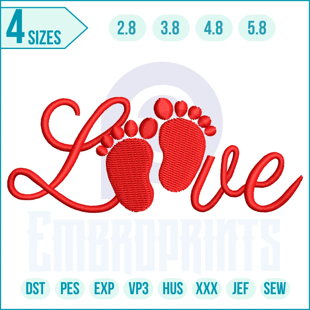 Baby love footstep embroidery design