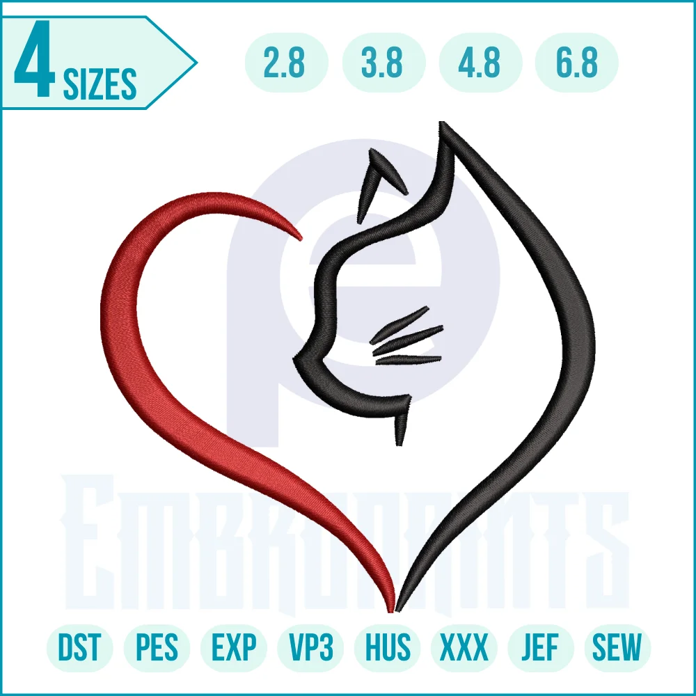 Cat grooming heart embroidery, Heart cat embroidery pattern, Cat embroidery design for clothes, Feline love embroidery pattern