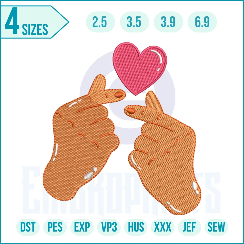 Romantic hand sign embroidery pattern, Couple hands forming heart embroidery, Love symbol hand embroidery design, Lovers hand sign embroidery pattern