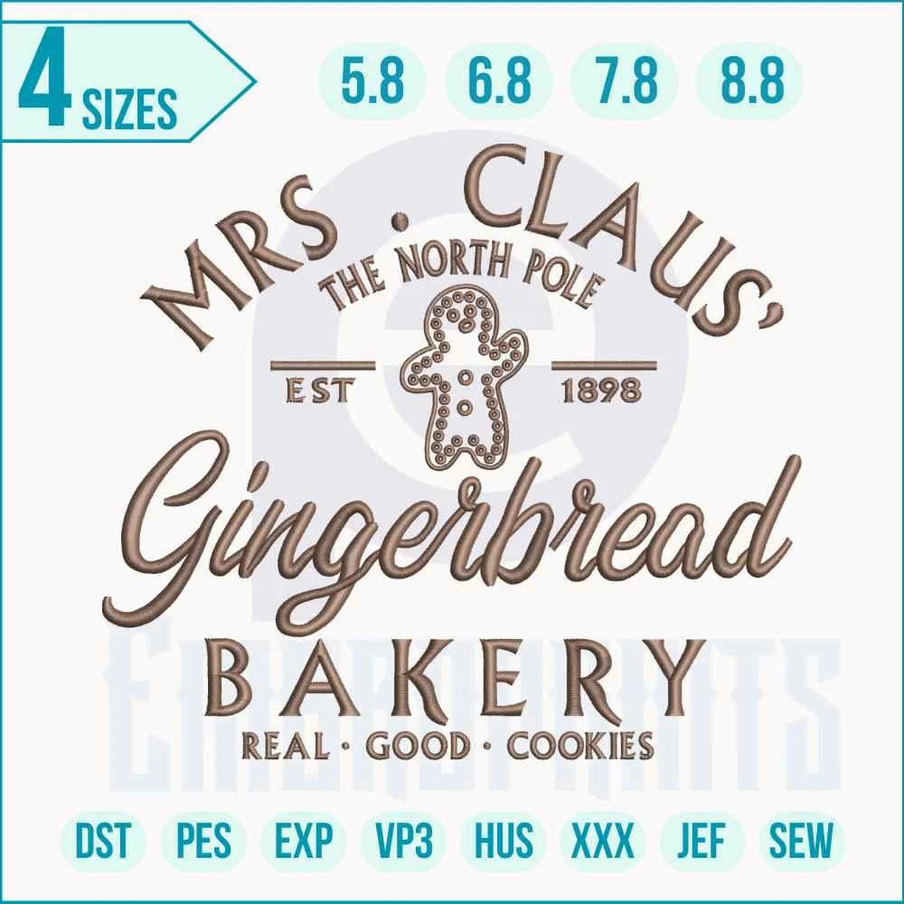 Bakery embroidery design, Gingerbread embroidery, Cute bakery embroidery, Christmas gingerbread embroidery