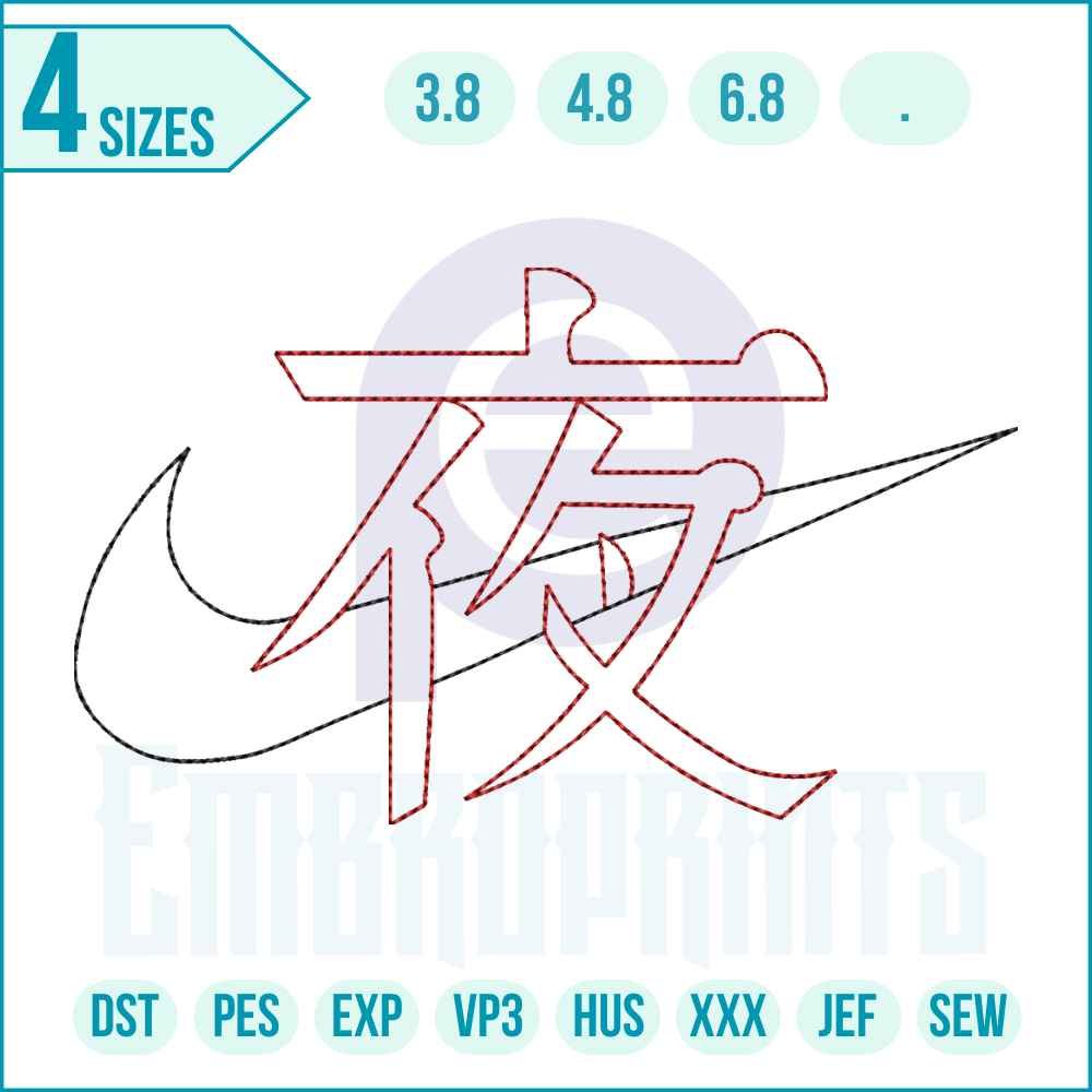 夜 swoosh embroidery file, Nike inspired 夜 embroidery logo, Outline 夜 embroidery pattern, 夜 digital embroidery design