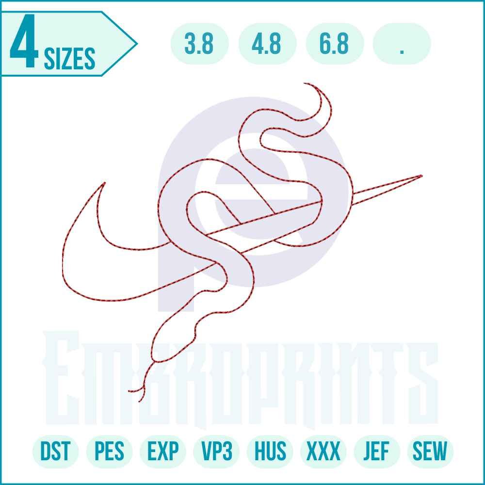 Snake swoosh embroidery file, Nike inspired snake embroidery logo , Outline snake embroidery pattern, Snake digital embroidery design