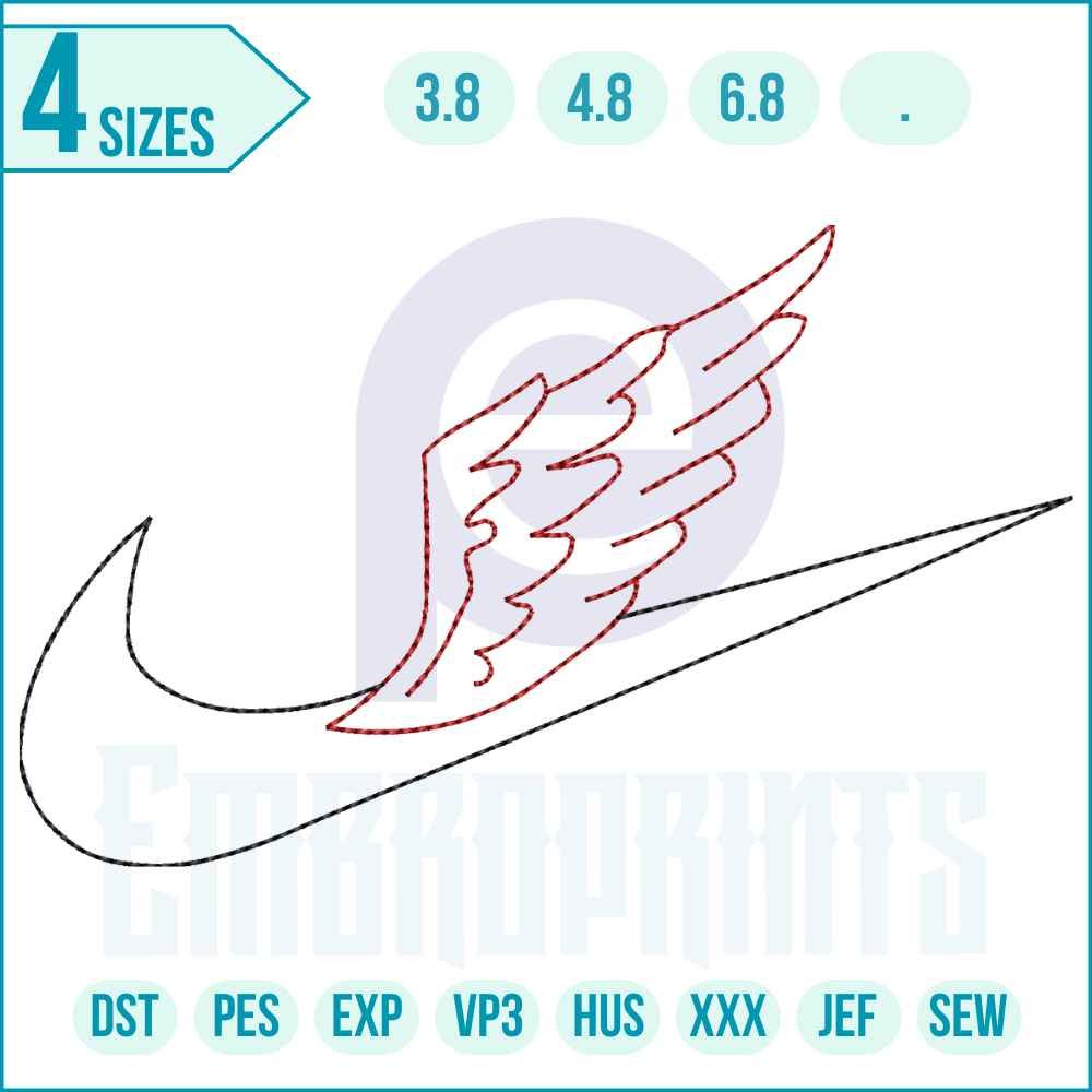 Wing swoosh embroidery file, Nike inspired wing embroidery logo, Outline wing embroidery pattern, Wing digital embroidery design