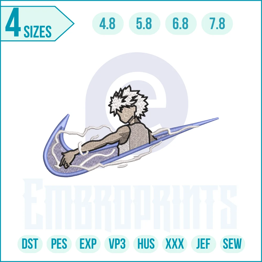 Anime swoosh embroidery, Hunter x Hunter embroidery design, Killua Nike swoosh embroidery, Anime fan art embroidery