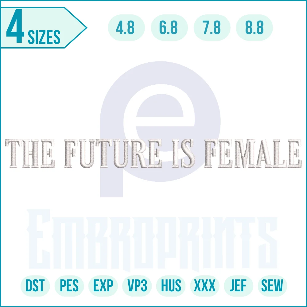 Celebrate strength and empowerment with this The Future Is Female Embroidery Design. Featuring a bold feminist slogan, this design is perfect for promoting equality, confidence, and women’s rights. Ideal for stitching on t-shirts, tote bags, jackets, hats, or home décor, it adds a powerful statement to any project.